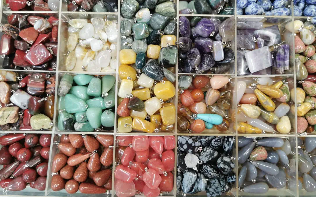 Nabízíme křišťál, tyrkys, aventurín, ametyst, nefrit, citrín, tygří oko, dračí achát, indický achát, achát přírodní, achát oceán, achát Botswana, hematit, korál, aquamarín, láva, rhodonit, mateřská perla, říční perla, sodalit, lapis lazuli, obsidián, onyx, karneol, jaspis, labradorit, granát, malachit, jadeit, pyrit, bílá skála, fluorit, chryzokola, zebra a další.